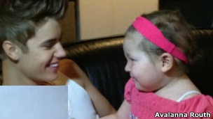 در این توییت جاستین بیبر در کنار اوالینا روث، کودک شش سالهای دیده میشود که گفته شده به نوع نادری از سرطان مغز مبتلاست. اوالینا که از هواداران جاستین بیبر بود، در ماه سپتامبر گذشته جان سپرد و توییت جاستین در یادبود او واکنشهای بسیاری را به دنبال داشت.